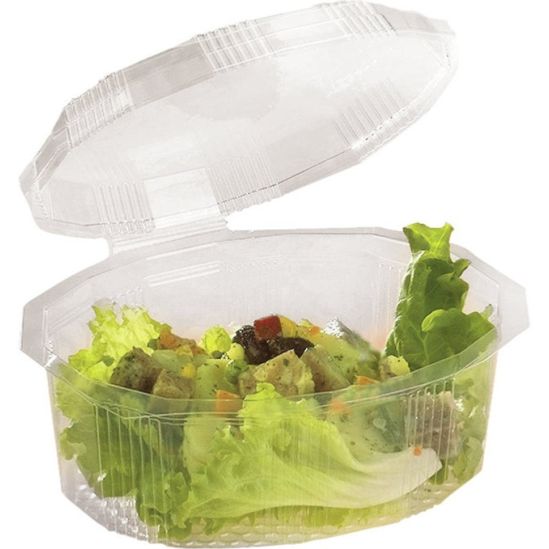 100% recyclable et octogonale avec couvercle attenant anti-buée et pouvant contenir jusqu'à 750 g d'aliments.De fabrication Française et certifiée conforme au contact alimentaire, elle est transparente pour mettre en valeur tout type de préparation froide ou pour la vente à emporter. Conçue pour supporter des températures allant de -40°C à +60°C. Empilable pour un gain d'espace optimal et vendue par paquet de 100.