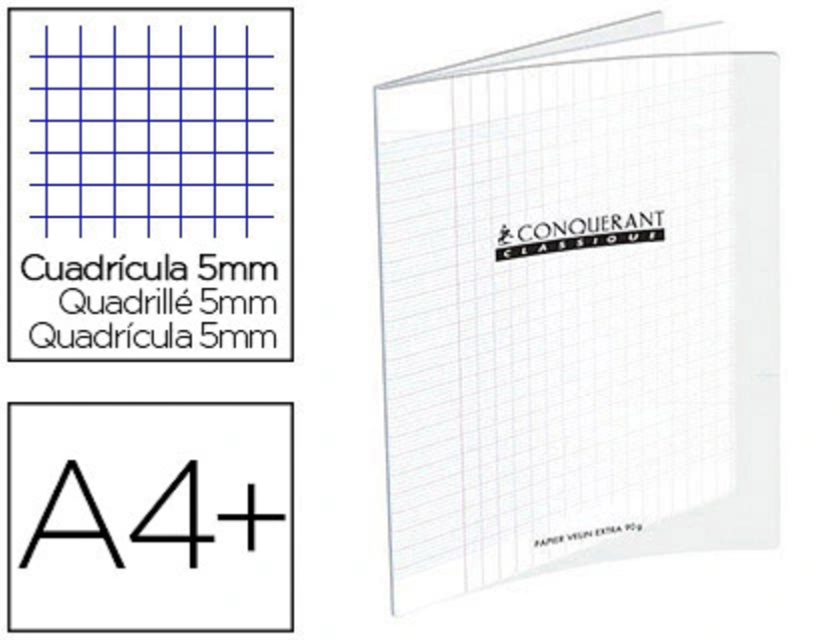 CAHIER SUPER CONQUERANT INCOLORE 96P PIQUE A4 5X5 90GRS